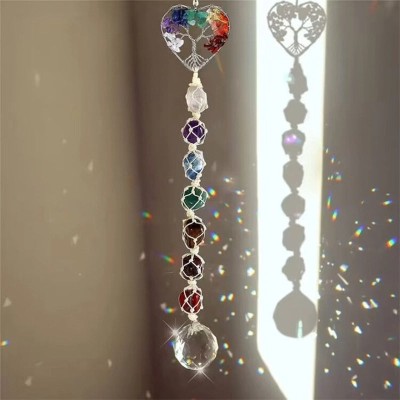 Natural Stone Lucky Tree Car Pendant Crystal Wind Chime Handmade Colorful Gravel Woven Hanging Decor|Car Accessories