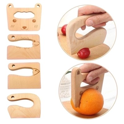 Adorable Bear and Fish Wooden Knife for Kids' Play Kitchen | Kids' Kitchen Toys
