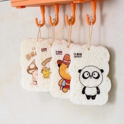 Adorable Cartoon Wooden Fiber Sponge Dishcloth Single Piece|Kitchen Cleaning Supplies