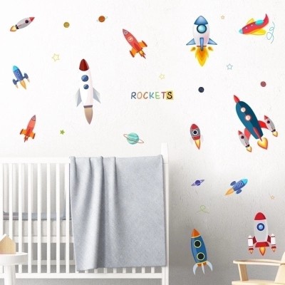 Cute Cartoon Space Rocket Wall Decals for Kids Room | Kids Room Decor