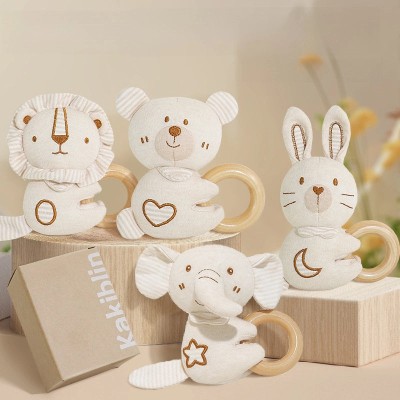 Organic Cotton Baby Hand Rattle Teether with Beech Wood Grinding Stick | Baby Toys & Teethers