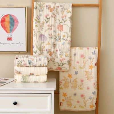 Double Layer Cotton Cartoon Baby Bath Towel Soft Gauze Blanket Multi-Use Air Conditioning Quilt|Baby Bath & Bedding