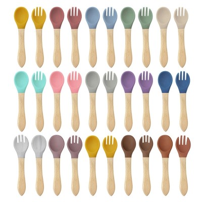 Wood and Silicone Spoon Fork Set, 2 Pieces Casual Solid Color | Kitchen Utensils & Cutlery