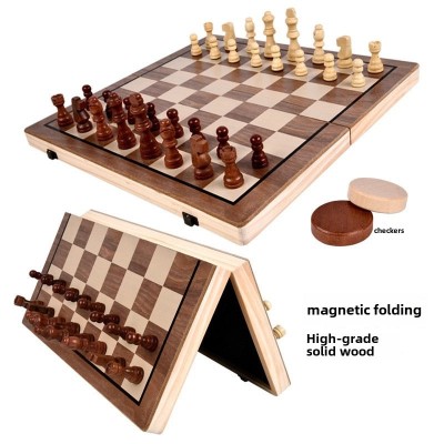 2in1 Magnetic Walnut Chess and Checkers Set with Direct Round Corner Folding Design|Board Games & Chess Sets