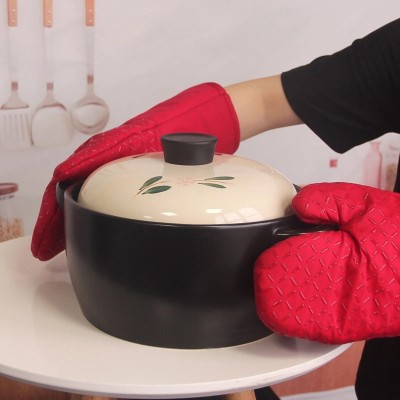 Unisex Non-slip Silicone Cotton Baking Oven Gloves Heat Resistant Check