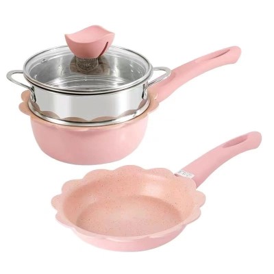 Solid Color Alloy Medical Stone Cookware Set 2 Pieces | Kitchen Cookware
