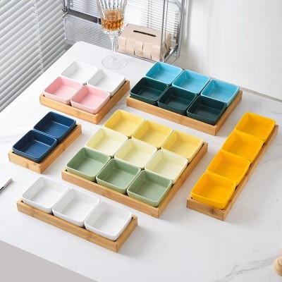 Nordic Ceramic Square Snack Bowl with Bamboo Wooden Tray | Kitchenware & Dining Accessories