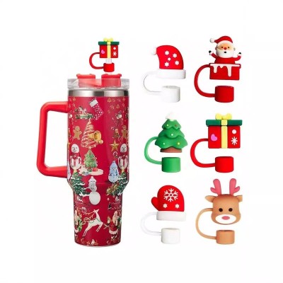 Christmas Santa Claus Silicone Straw Cap Set|Holiday Drink Accessories