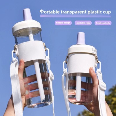 Creative Large Capacity Plastic Straw Cup with Portable Rope for Girls | Outdoor Sports Drinkware
