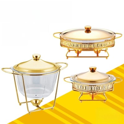 耐热玻璃炉圆形酒精加热金色自助餐锅带盖恒温保温锅|厨房用品