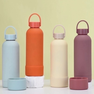 Stylish Solid Color Stainless Steel Water Bottle with Silicone Sleeve 1 Piece|Drinkware & Bottles