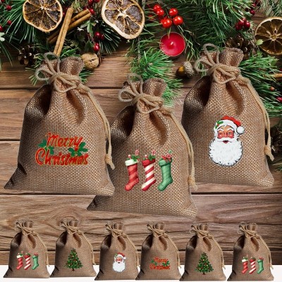 Christmas Linen Christmas Socks Gift Bags Santa Claus Candy Party Favor Bags|Holiday Gift Bags