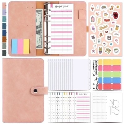 A6 Macaron Leather Refillable Loose-leaf Notebook with 12 Zipper Bags | Stationery & Office Supplies