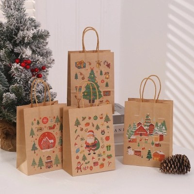 Festive Santa Claus Kraft Paper Gift Bags for Holiday Presents|Holiday Gift Bags