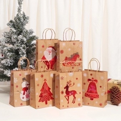 Christmas Cartoon Brown Paper Gift Bags for Holiday Parties|Christmas Party Supplies