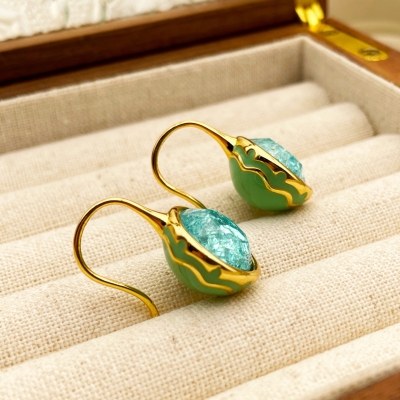 Vintage Ice Crack Gemstone Enamel Earrings