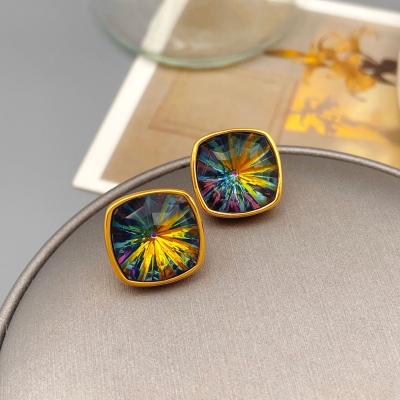 Sugar Cube Crystal Simple Stud Earrings