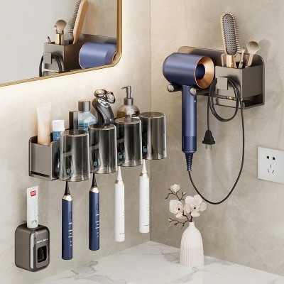 Gun Grey Toothbrush Holder Removable Washable Punch-Free Wall-Mounted Electric Toothbrush Cup Mouthwash Cup Hair Dryer Organizer|Bathroom Accessories