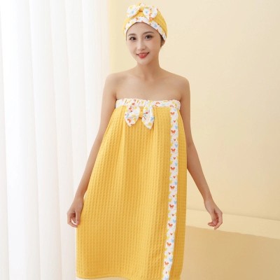 Cartoon Doll Coral Fleece Bathrobe and Dry Hair Hat Two-Piece Set for Women | Bath & Spa Accessories