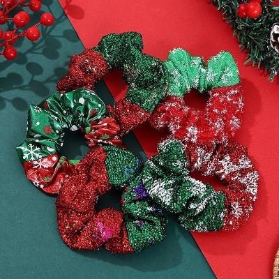 Women's Velvet Christmas Bow Hair Ties 12 Colors Santa Snowflake Patterns