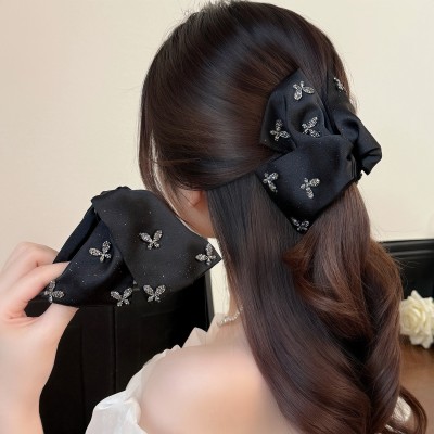Women's Vintage Rhinestone Cloth Styling Hair Clip Elegant Black Bowknot