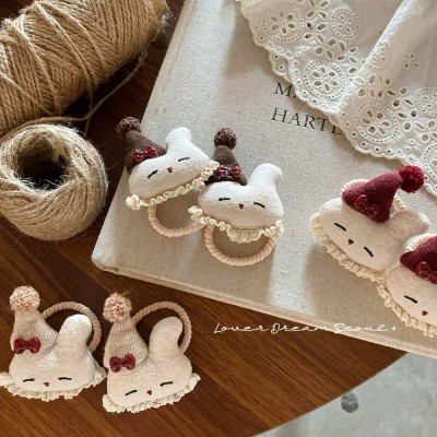 2Pcs Girls Cute Rabbit Plush Hair Ties High Elasticity Winter Soft Hair Bands