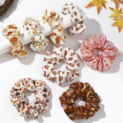 Women Versatile Fabric Hair Ties Assorted Turkey Pumpkin Patterns
