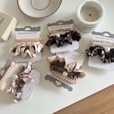Women's Fabric Ponytail Hair Ties Vintage Leopard Print Pearl Ruffles