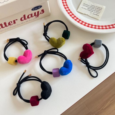 Girls Double-Headed Elastic Fabric Ponytail Hair Bands Heart Shape