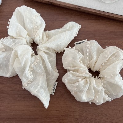 Women's Pearl Floral Mesh Hair Tie Elastic French Bun Solid Color