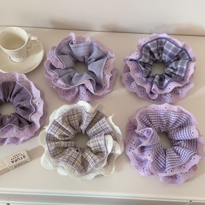 Women's Autumn Winter Velvet Hair Tie French Retro Large Black Lace