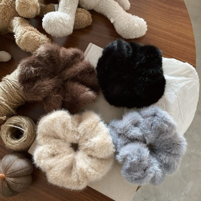 Women's Winter Fairy Feather Hair Tie Fluffy Scrunchie Solid Colors