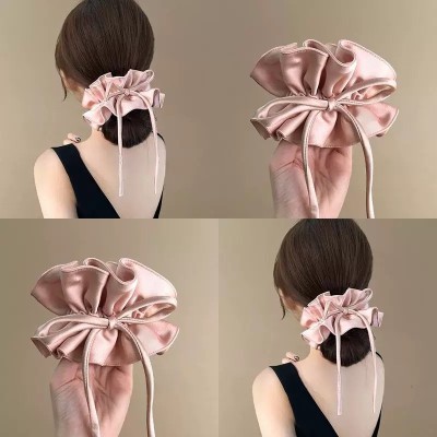 Ladies Double Layer Satin Elastic Ponytail Hair Scarf Bow Knot