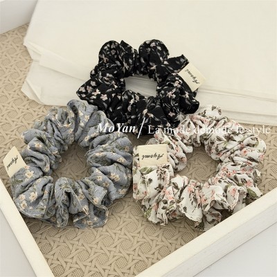 Women's Vintage Four-Layer Fabric Hair Tie Ditsy Floral White Blue Black