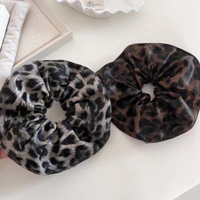 Women's Vintage PU Leather Leopard Print Hair Tie Retro Ponytail Elastic