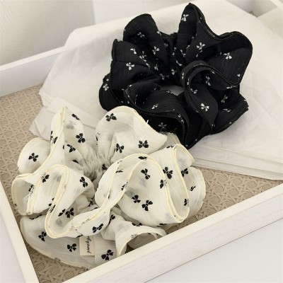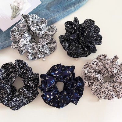 Women's Minimalist Fabric Hair Tie For Ponytails Beige Black Floral Print