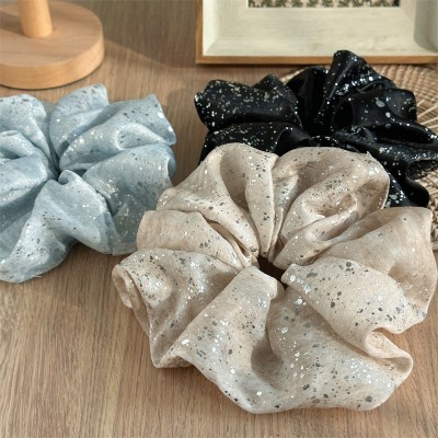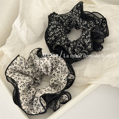 Women's Vintage Polyester Flower Hair Scrunchie Large Polka Dot