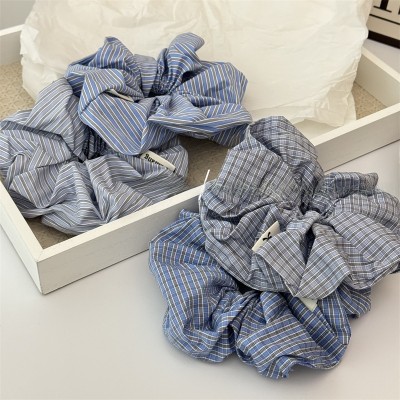 Women's Soft Cloth Hair Tie, Stylish Blue Plaid Scrunchie for All Seasons