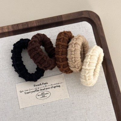 Women's Retro Knit Hair Tie For Autumn Winter Styling Solid White