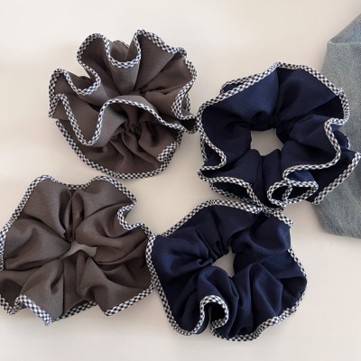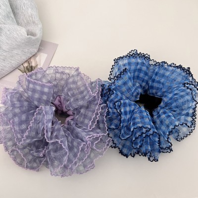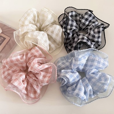 Women's Stylish Gauze Hair Accessories Scrunchies Blue Checkered Plaid