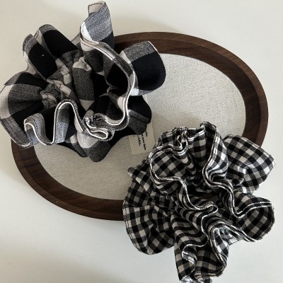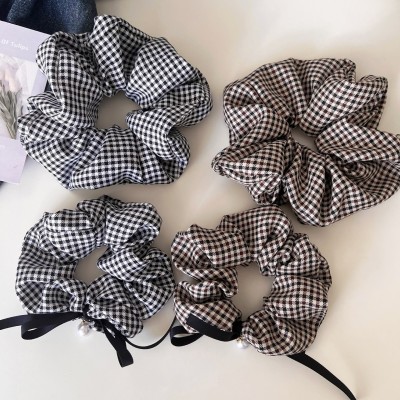 Women's Stylish Cloth Hair Scrunchies For Everyday Wear Black Plaid Checkered