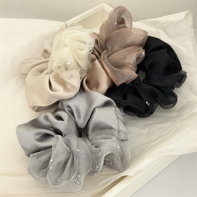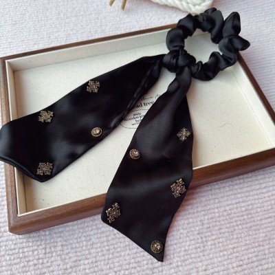 Women's French Rhinestone Satin Hair Tie Spring Accessory Black