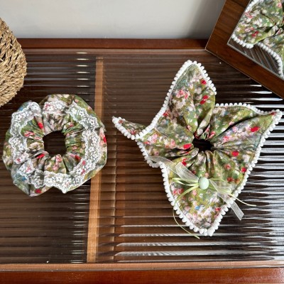 Women's Sweet Spring Cloth Hair Tie Green Ditsy Floral Lace Bow Knot