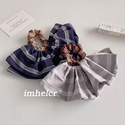 Women's Retro Winter Fabric Hair Tie Scrunchie Dark Grey Striped