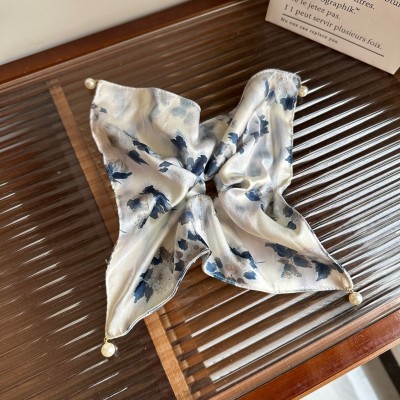 Women's Summer Cloth Hair Tie with Pearls French Tie Dye Ink Painting