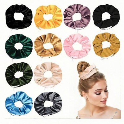 Women's Velvet Zipper Pocket Hair Scrunchies Retro Leopard Multi-Color