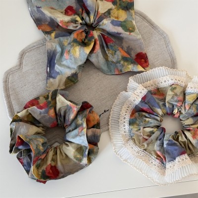 Women's Cloth Elastic Scarf Hair Tie Retro Oil Painting Floral
