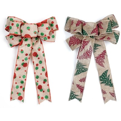 20cm Christmas Linen Bow Pendant Large Printed Bow Japanese Korean Style Holiday Decoration | Home Decor & Seasonal Decorations