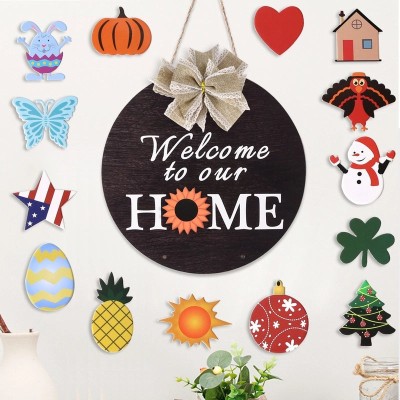 Seasonal Wooden Door Pendant with Replaceable Flower Decorations for Christmas Welcome Decor|Home & Garden Decorations
