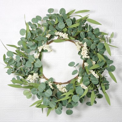 Artificial Eucalyptus Wreath 55cm Round Leaves with Berries for Front Door Decoration|Home Decor & Artificial Flowers